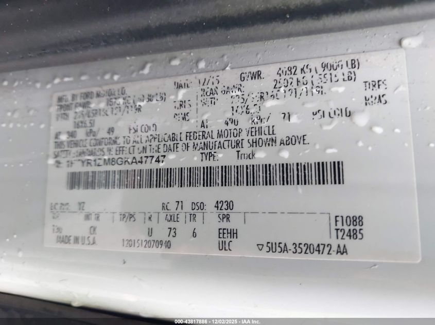 Цвет БелыйЦилиндры 6Привод Задний приводVIN 1FTYR1ZM8GKA47747Состояние СтационарноПовреждения Передняя или задняя AutoRIA