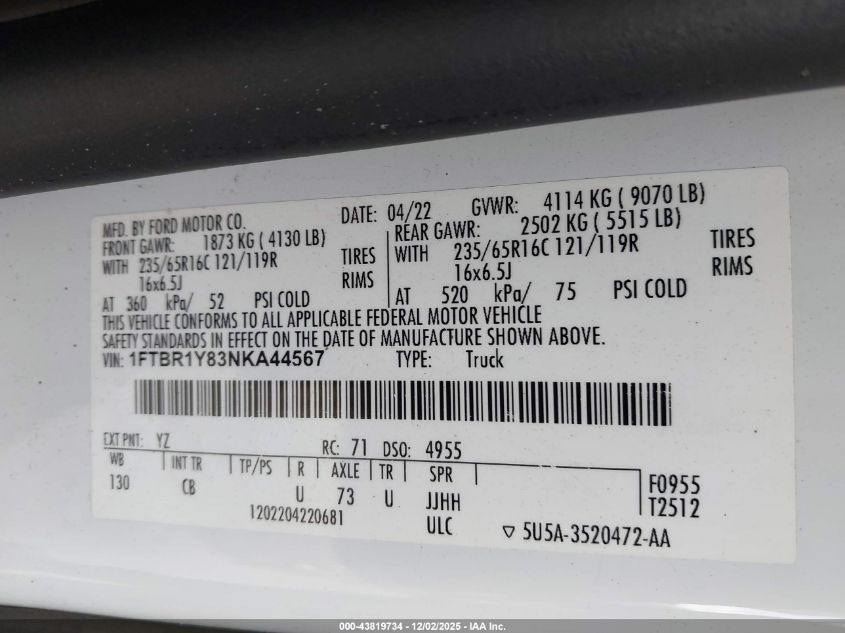 Цвет БелыйЦилиндры 6Привод Задний приводVIN 1FTBR1Y83NKA44567Состояние СтационарноПовреждения По всему авто AutoRIA