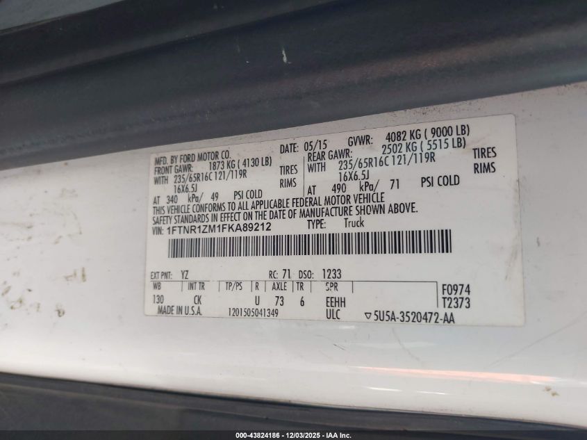 Цвет БелыйЦилиндры 6Привод Задний приводVIN 1FTNR1ZM1FKA89212Состояние СтационарноПовреждения Передняя и задняя AutoRIA
