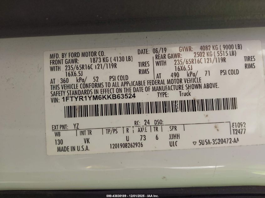 2019 FORD TRANSIT 2019 року Бензин, 3.7, Задний привод, vin - 1FTYR1YM6KKB63524 из США