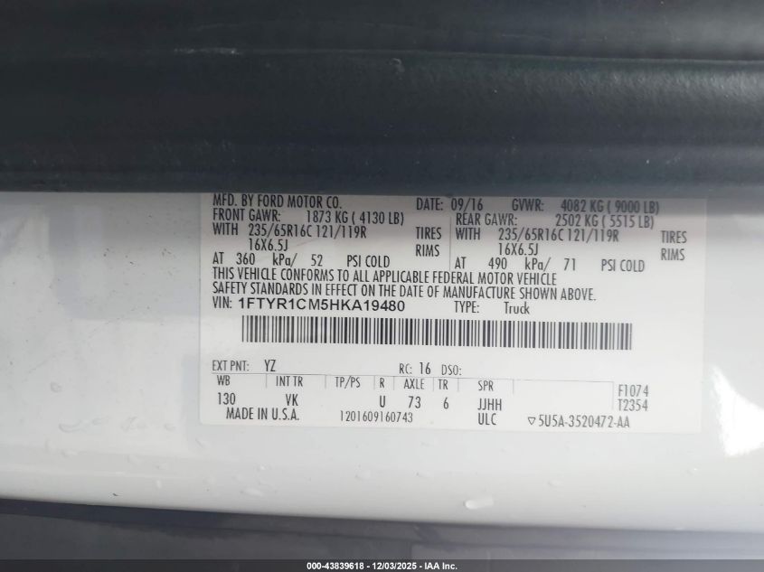 2017 FORD TRANSIT 2017 року Бензин, 3.7, Задний привод, vin - 1FTYR1CM5HKA19480 из США