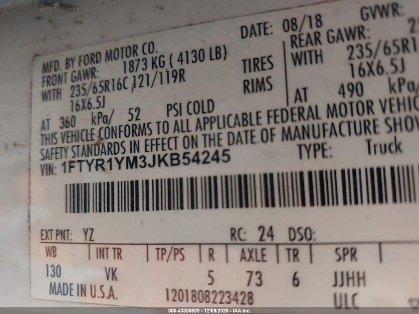 2018 FORD TRANSIT 2018 року Бензин, 3.7, Задний привод, vin - 1FTYR1YM3JKB54245 из США