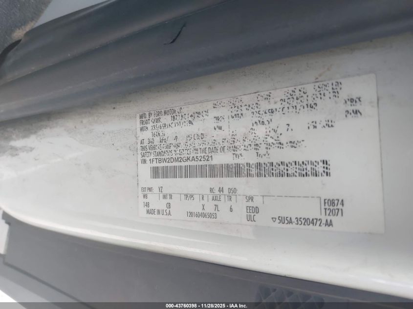 Цвет БелыйЦилиндры 6Привод Задний приводVIN 1FTBW2DM2GKA52521Состояние Заводится и едет (проверено)Повреждения Задняя AutoRIA