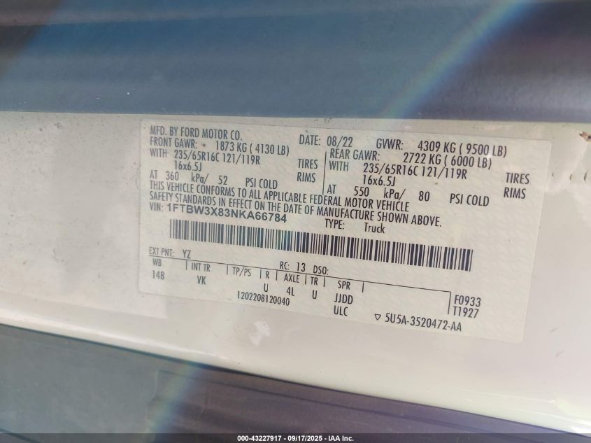 Цвет БелыйЦилиндры 6Привод Задний приводVIN 1FTBW3X83NKA66784Состояние Заводится и едет (проверено)Повреждения Задняя AutoRIA