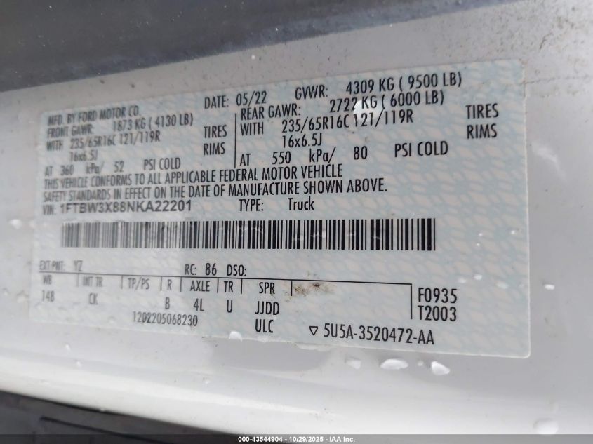 Цвет БелыйЦилиндры 6Привод Задний приводVIN 1FTBW3X88NKA22201Состояние Заводится и едет (проверено)Повреждения Передняя и задняя AutoRIA