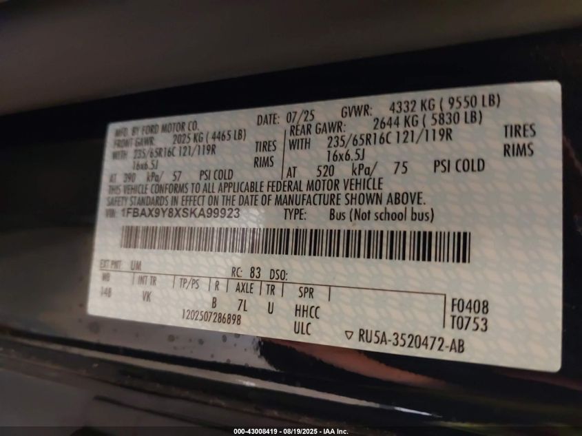 2025 FORD TRANSIT 2025 року Бензин, 3.5, Полный привод, vin - 1FBAX9Y8XSKA99923 из США