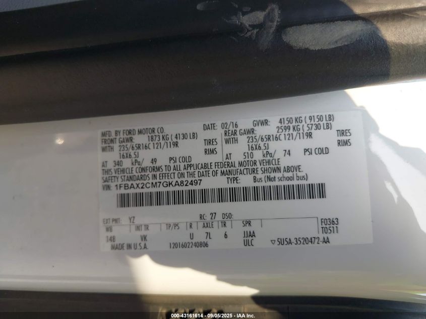 2016 FORD TRANSIT 2016 року Бензин, 3.7, Задний привод, vin - 1FBAX2CM7GKA82497 из США