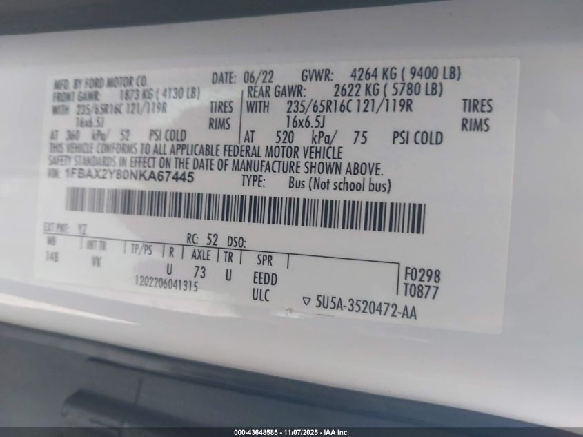 2022 FORD TRANSIT 2022 року Бензин, 3.5, Задний привод, vin - 1FBAX2Y80NKA67445 из США