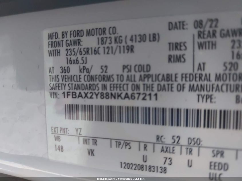 2022 FORD TRANSIT 2022 року Бензин, 3.5, Задний привод, vin - 1FBAX2Y88NKA67211 из США