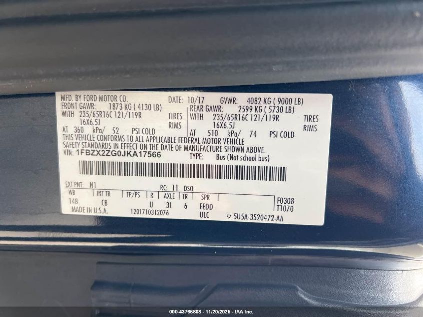 2018 FORD TRANSIT 2018 року Бензин, 3.5, Задний привод, vin - 1FBZX2ZG0JKA17566 из США