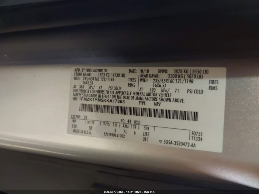 2019 FORD TRANSIT 2019 року Бензин, 3.7, Задний привод, vin - 1FMZK1YM5KKA17863 из США