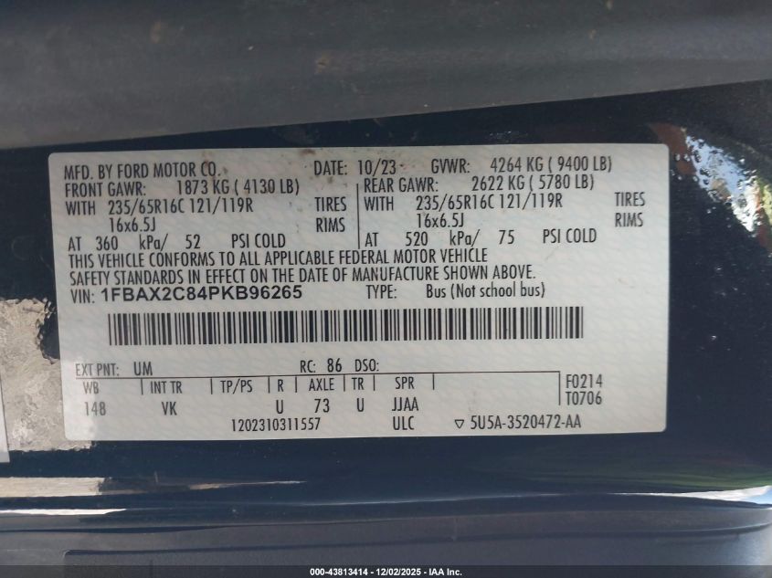 2023 FORD TRANSIT 2023 року Бензин, 3.5, Задний привод, vin - 1FBAX2C84PKB96265 из США