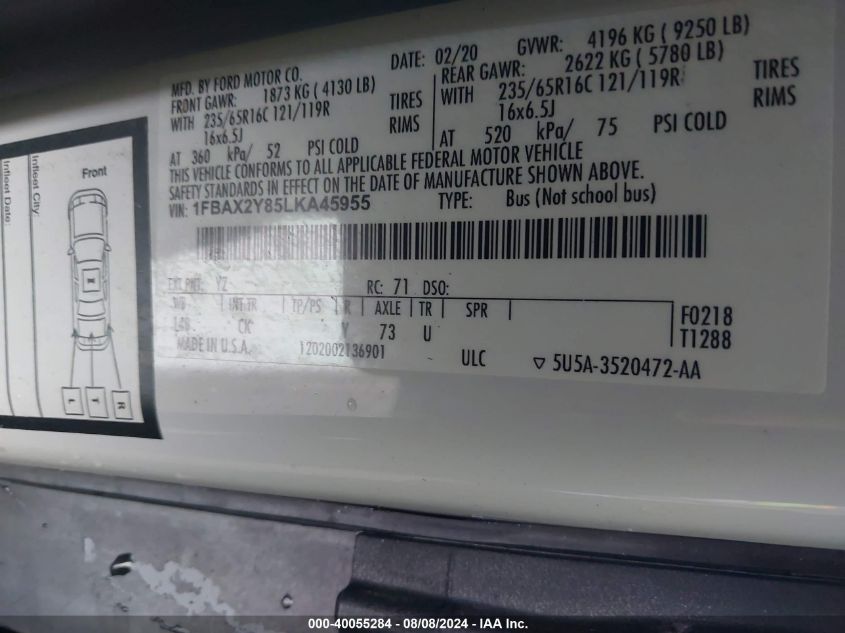 2020 FORD TRANSIT 2020 року Бензин, 3.5, Задний привод, vin - 1FBAX2Y85LKA45955 из США