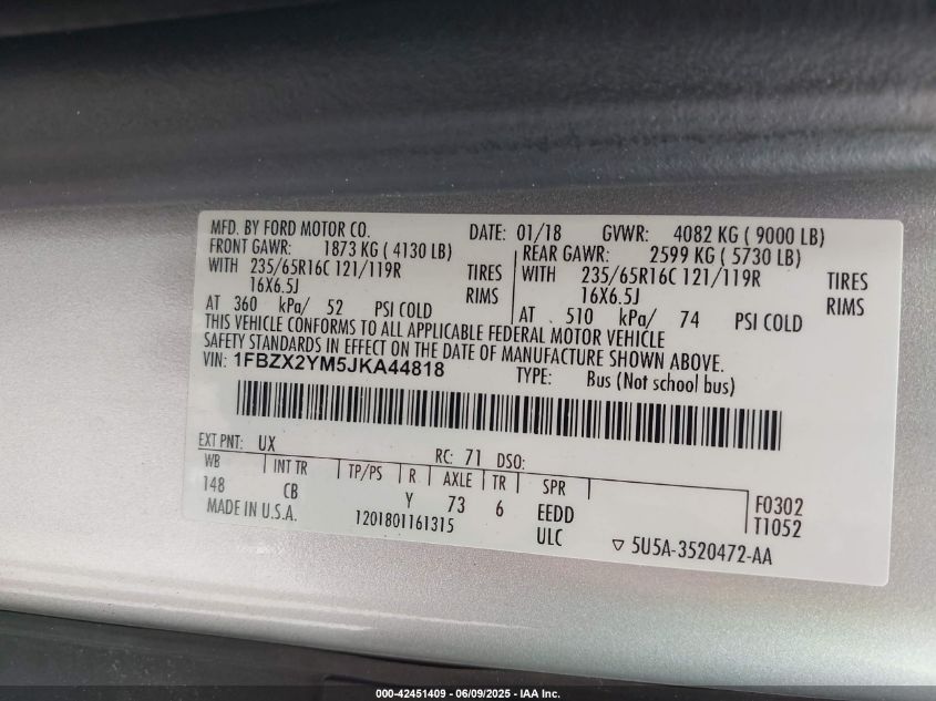 Цвет СеребряныйЦилиндры 6Привод Задний приводVIN 1FBZX2YM5JKA44818Состояние СтационарноПовреждения Передняя или задняяДата аукциона 2025-12-09 AutoRIA