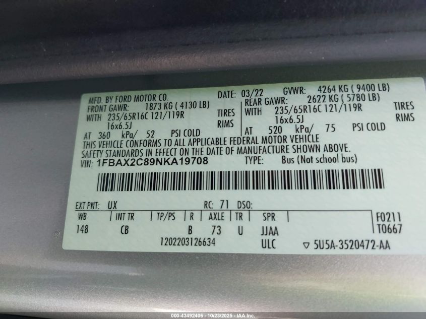 2022 FORD TRANSIT T-350