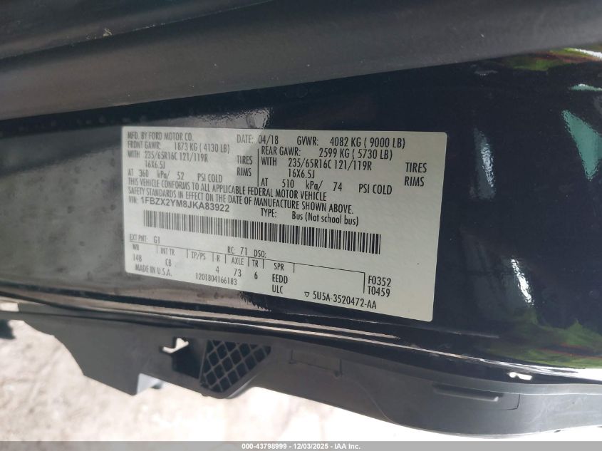 2018 FORD TRANSIT 2018 року Бензин, 3.7, Задний привод, vin - 1FBZX2YM8JKA83922 из США