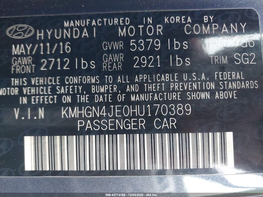2017 GENESIS G80 2017 року Бензин, 3.8, Задний привод, vin - KMHGN4JE0HU170389 из США