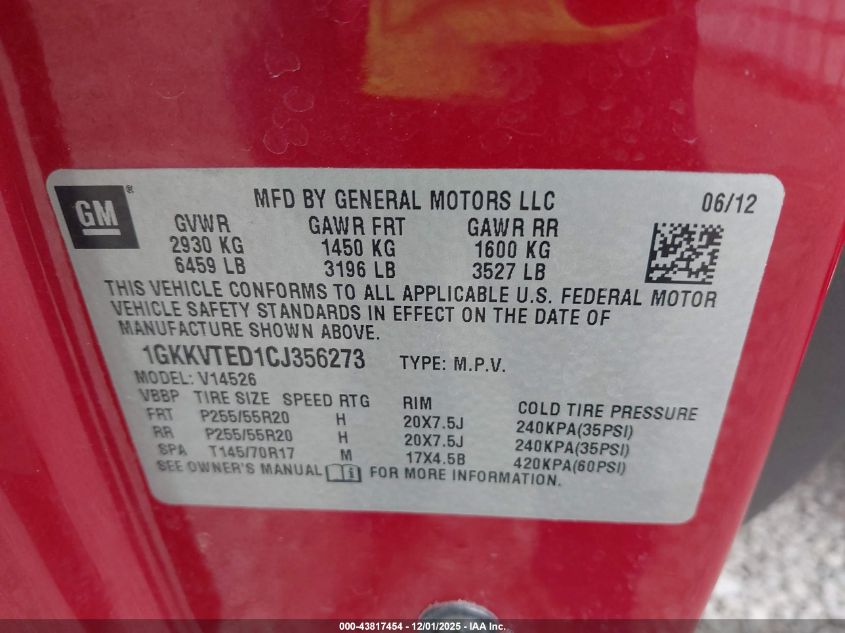 2012 GMC ACADIA 2012 року Бензин, 3.6, Полный привод, vin - 1GKKVTED1CJ356273 из США