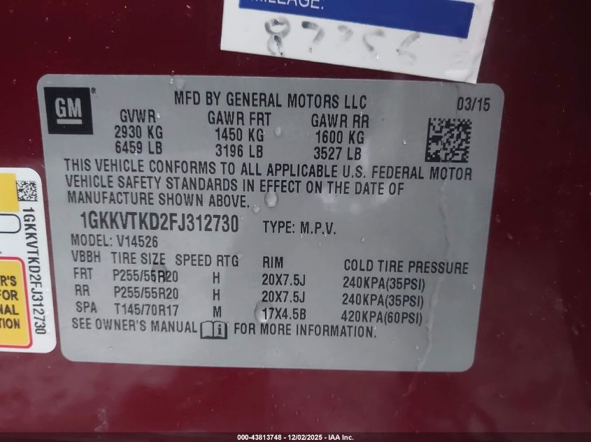 Цвет КрасныйЦилиндры 6Привод Полный приводVIN 1GKKVTKD2FJ312730Состояние Заводится и едет (проверено)Повреждения Передняя левая AutoRIA