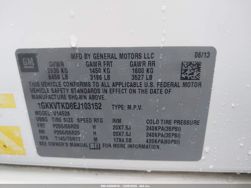 2014 GMC ACADIA 2014 року Бензин, 3.6, Полный привод, vin - 1GKKVTKD8EJ103152 из США