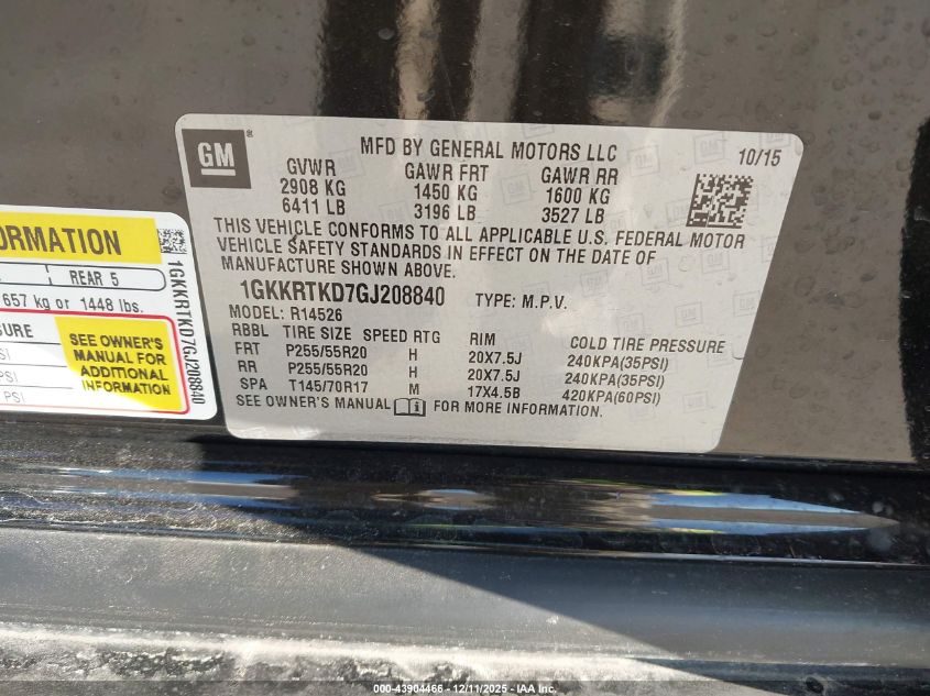 Цвет ЧерныйЦилиндры 6Привод Передний приводVIN 1GKKRTKD7GJ208840Состояние Заводится и едет (проверено)Повреждения Передняя правая AutoRIA