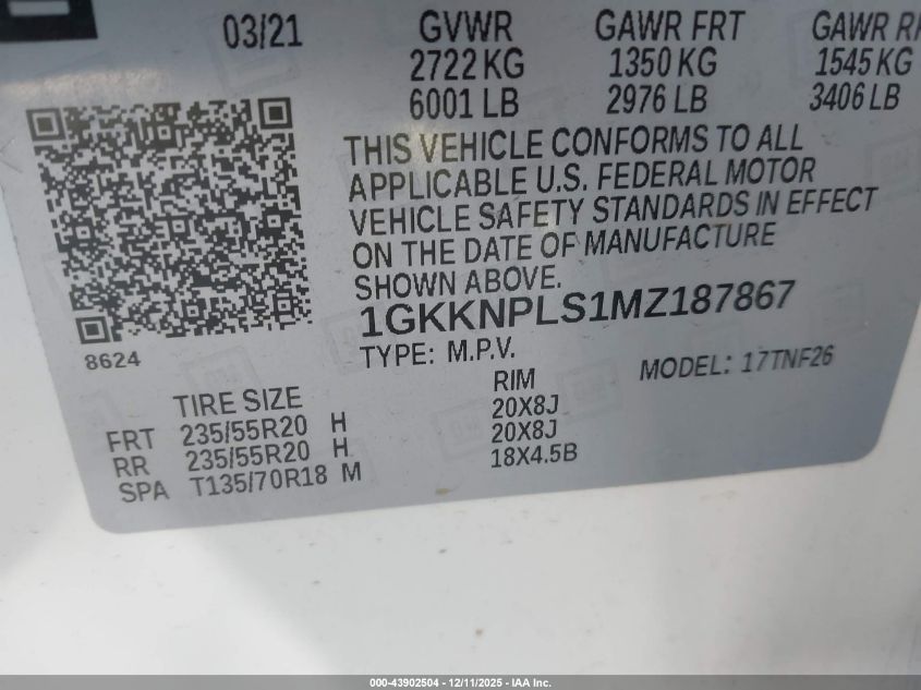 Цвет БелыйЦилиндры 6Привод Передний приводVIN 1GKKNPLS1MZ187867Состояние Заводится и едет (проверено)Повреждения Передняя или задняя AutoRIA