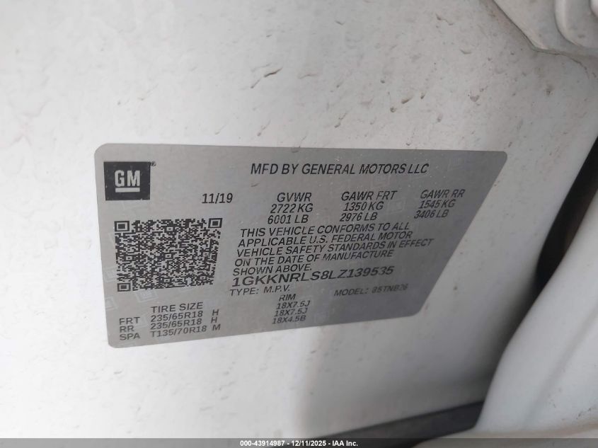 2020 GMC ACADIA 2020 року Бензин, 3.6, Полный привод, vin - 1GKKNRLS8LZ139535 из США