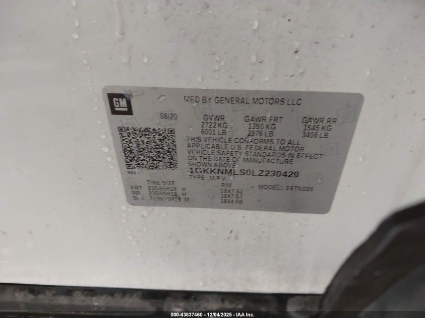 2020 GMC ACADIA 2020 року Бензин, 3.6, Передний привод, vin - 1GKKNMLS0LZ230429 из США