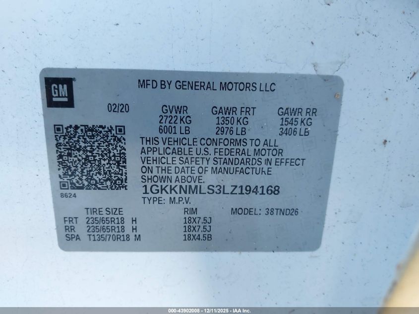 2020 GMC ACADIA 2020 року Бензин, 3.6, Передний привод, vin - 1GKKNMLS3LZ194168 из США