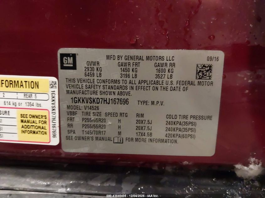 2017 GMC ACADIA 2017 року Бензин, 3.6, Полный привод, vin - 1GKKVSKD7HJ167696 из США