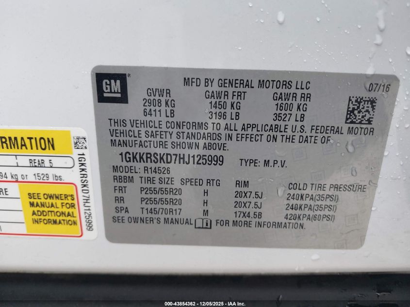 Цвет БелыйЦилиндры 6Привод Передний приводVIN 1GKKRSKD7HJ125999Состояние Заводится и едет (проверено)Повреждения Задняя AutoRIA