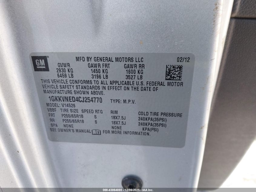 2012 GMC ACADIA 2012 року Бензин, 3.6, Полный привод, vin - 1GKKVNED4CJ254770 из США