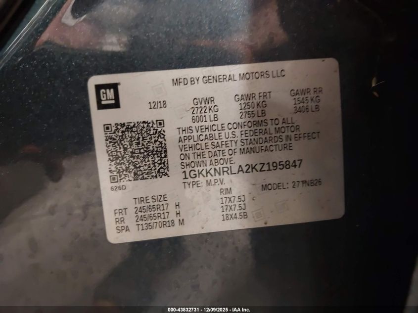 2019 GMC ACADIA 2019 року Бензин, 2.5, Полный привод, vin - 1GKKNRLA2KZ195847 из США