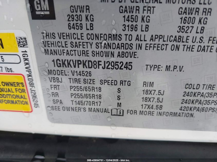 Цвет БелыйЦилиндры 6Привод Полный приводVIN 1GKKVPKD8FJ295245Состояние Заводится и едет (проверено)Повреждения Передняя левая AutoRIA