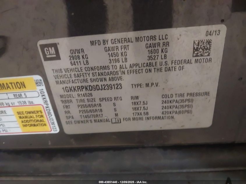 Цвет СерыйЦилиндры 6Привод Передний приводVIN 1GKKRPKD9DJ239123Состояние Заводится и едет (проверено)Повреждения Передняя правая AutoRIA