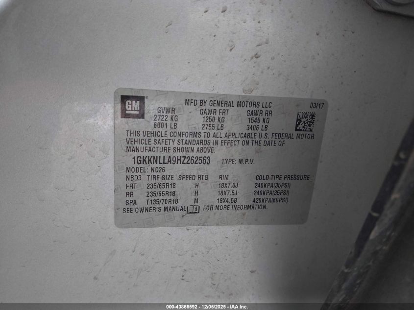 2017 GMC ACADIA 2017 року Бензин, 2.5, Передний привод, vin - 1GKKNLLA9HZ262563 из США