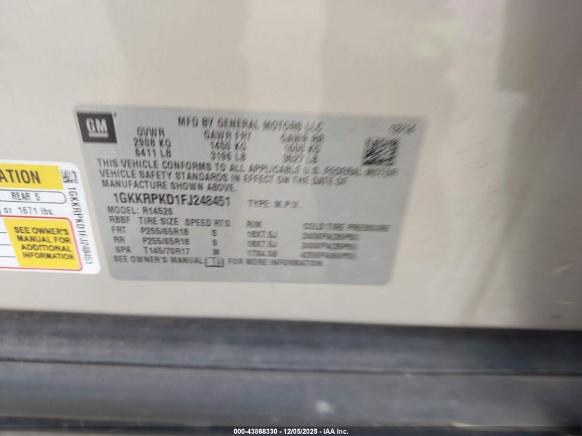 Цвет ЗагарЦилиндры 6Привод Передний приводVIN 1GKKRPKD1FJ248451Состояние Заводится и едет (проверено)Повреждения Передняя или задняя AutoRIA