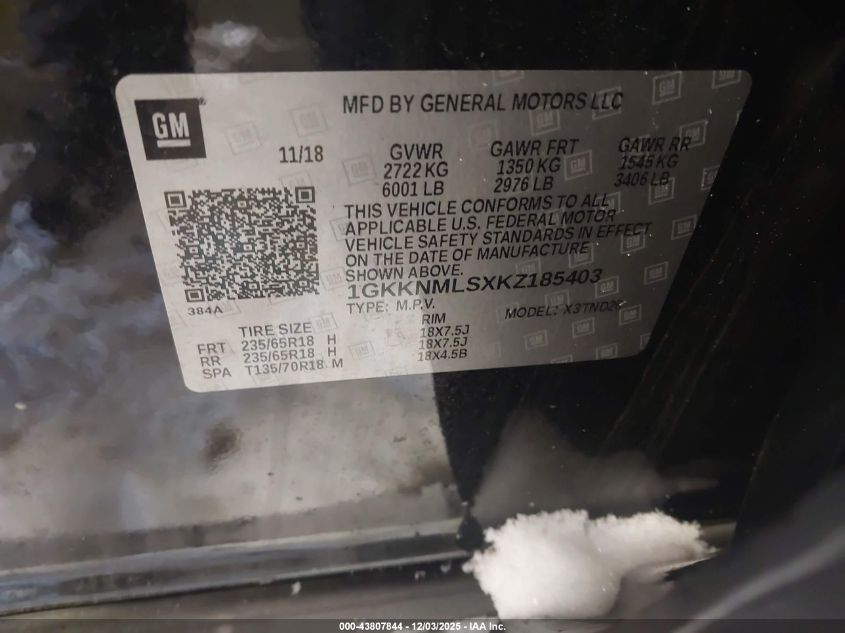 Цвет ЧерныйЦилиндры 6Привод Передний приводVIN 1GKKNMLSXKZ185403Состояние СтационарноПовреждения Передняя или задняя AutoRIA