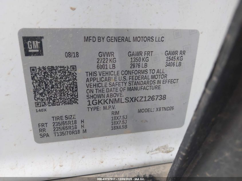 Цвет БелыйЦилиндры 6Привод Передний приводVIN 1GKKNMLSXKZ126738Состояние Заводится и едет (проверено)Повреждения Передняя правая AutoRIA