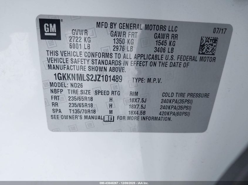 2018 GMC ACADIA 2018 року Бензин, 3.6, Передний привод, vin - 1GKKNMLS2JZ101489 из США