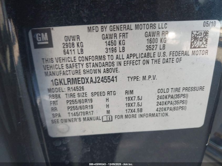2010 GMC ACADIA 2010 року Бензин, 3.6, Передний привод, vin - 1GKLRMEDXAJ245541 из США