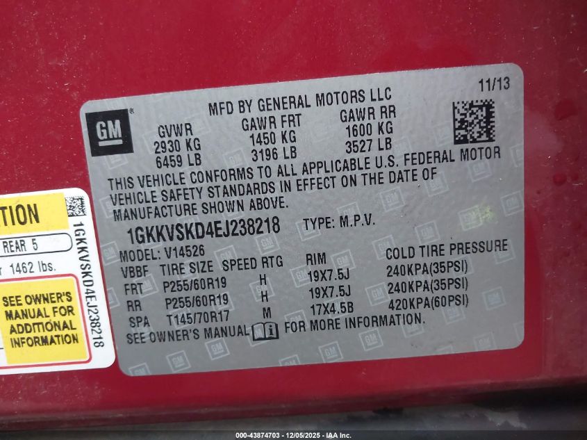 Цвет КрасныйЦилиндры 6Привод Полный приводVIN 1GKKVSKD4EJ238218Состояние Заводится и едет (проверено)Повреждения Обычный износ AutoRIA
