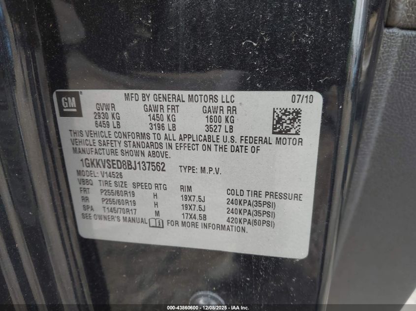 2011 GMC ACADIA 2011 року Бензин, 3.6, Полный привод, vin - 1GKKVSED8BJ137562 из США