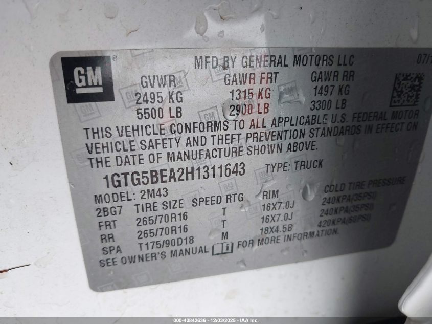 2017 GMC CANYON 2017 року Бензин, 2.5, , vin - 1GTG5BEA2H1311643 из США