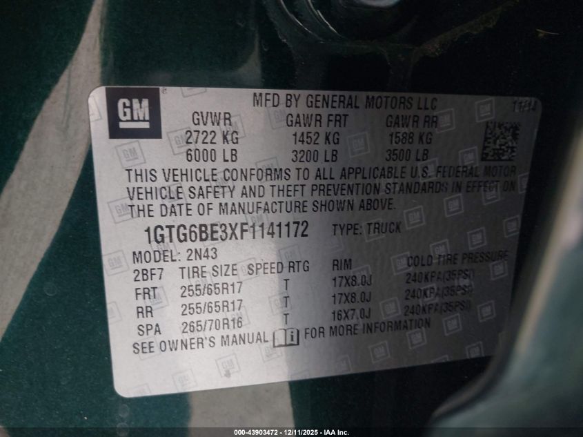 Цвет ЗеленыйЦилиндры 6Привод Полный приводVIN 1GTG6BE3XF1141172Состояние Заводится и едет (проверено)Повреждения Передняя или задняя AutoRIA