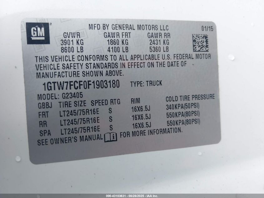 Цвет БелыйЦилиндры 8Привод Задний приводVIN 1GTW7FCF0F1903180Состояние СтационарноПовреждения Передняя или задняяДата аукциона 2025-12-10