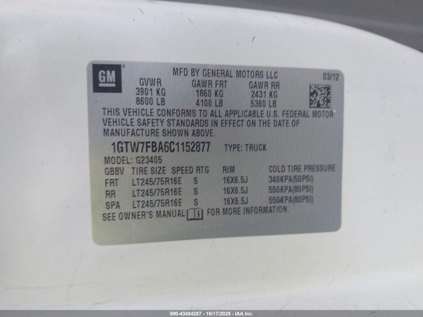 Цвет БелыйЦилиндры 8Привод Задний приводVIN 1GTW7FBA6C1152877Состояние СтационарноПовреждения Левая сторона
