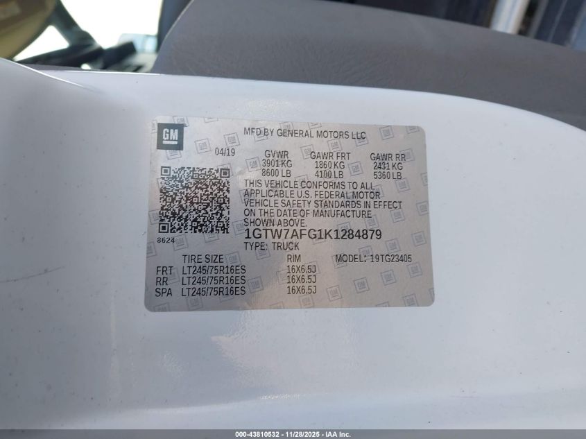 Цвет БелыйЦилиндры 8Привод Задний приводVIN 1GTW7AFG1K1284879Состояние Заводится и едет (проверено)Повреждения Передняя или задняя