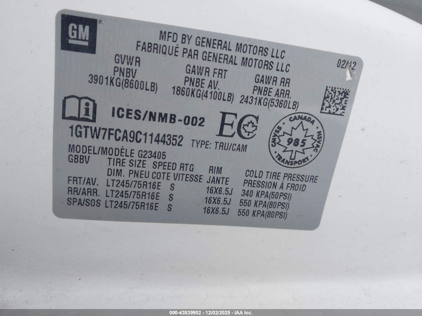 2012 GMC SAVANA G3500