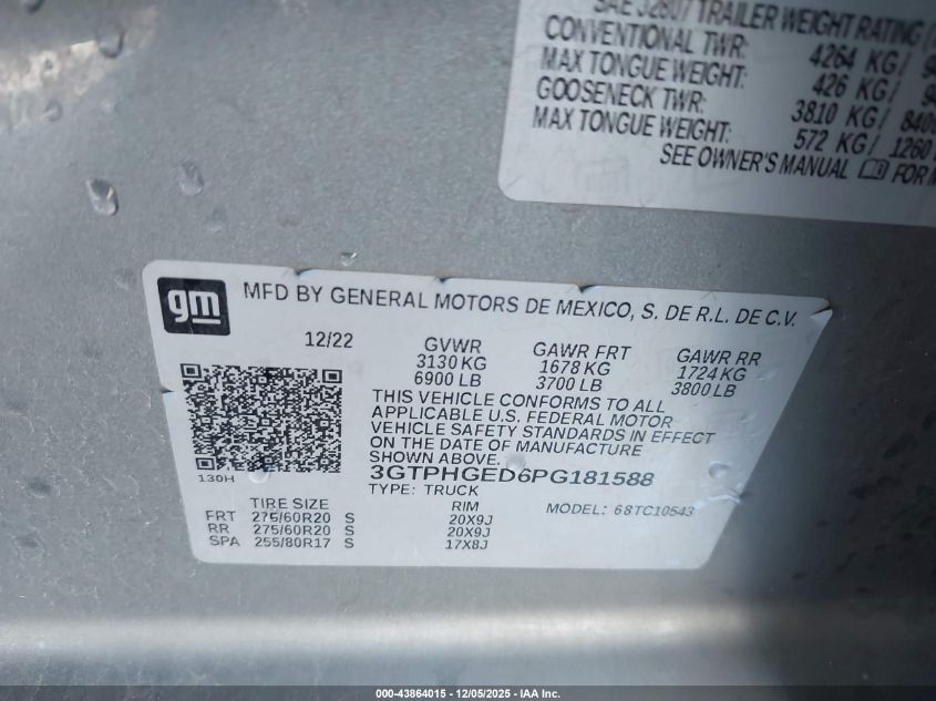 2023 GMC SIERRA 1500 2023 року Бензин, 5.3, , vin - 3GTPHGED6PG181588 из США